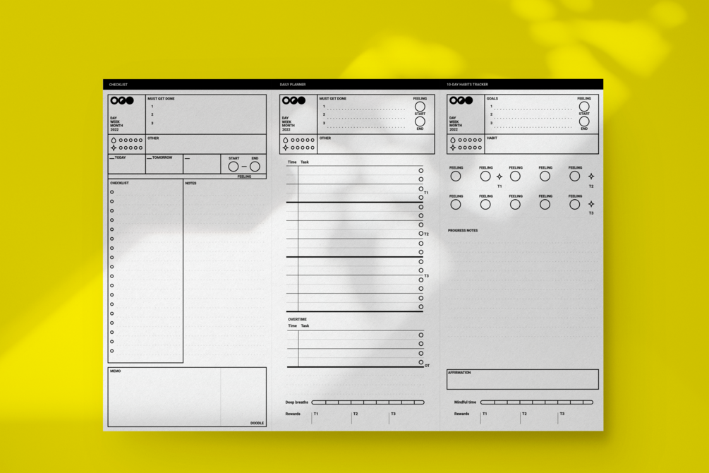 Streamline your productivity and stay on top of your goals with goood plan's one-sheet solution! With our minimalist design, you can easily track all your tasks, schedules, and habits in one view. Plus, it's completely FREE or pay what you want. Download now and start taking control of your life!